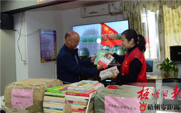 3月5日上午,在金葉社區(qū),市總工會志愿者向社區(qū)捐贈圖書。 當(dāng)天是全國學(xué)雷鋒紀(jì)念日,我市各單位部門繼續(xù)組織開展各項學(xué)雷鋒志愿服務(wù)活動。上午,市總工會組織黨員志愿者為“雙報到”結(jié)對社區(qū)金葉社區(qū)贈送200多冊圖書,幫助社區(qū)完善圖書室建設(shè),提高精神文明建設(shè)。 梧州日報記者 李鴻榮 攝 市委辦幫助社區(qū)困難群眾實現(xiàn)“微心愿”,龍圩區(qū)委宣傳部組織志愿服務(wù)隊上門為孤寡老人做社保年審、打掃衛(wèi)生,市公積金中心向貧困村兒童捐贈學(xué)習(xí)用品……大家把關(guān)注目光投向基層群眾、弱勢群體,用心聆聽群眾急難、真情回應(yīng)群眾關(guān)切,用微小舉動溫暖群眾心田,營造起“社會是個大家庭”的互助互愛氛圍。 市婦女聯(lián)合會組織“走向珠三角、建功大灣區(qū)”巾幗專場招聘會,20多家企業(yè)提供多種女性工作崗位,服務(wù)婦女發(fā)展就業(yè);市博物館講解員開展志愿講解服務(wù),引領(lǐng)觀展群眾傳承文化、傳播文明;金融機構(gòu)開展防范電信詐騙、普惠金融等知識宣傳,為群眾解疑釋惑……大家發(fā)揮業(yè)務(wù)專長,把學(xué)雷鋒行動、踐行志愿服務(wù)精神落到崗位中。 桂東公路管理局等部門開展義務(wù)植樹、城鄉(xiāng)環(huán)境清潔活動,大家栽花種樹、掃去陳年垃圾、疏通堵塞渠道,除舊布新扮靚家園;市工商局組織干部擔(dān)任文明交通勸導(dǎo)員,用善意勸導(dǎo)糾正不文明行為,傳播文明理念;市工信委等部門組織干部職工走進居民小區(qū)開展志愿服務(wù),幫助群眾維修小家電、理發(fā)、義診,踐行全心全意為人民服務(wù)精神……大家懷著共建美麗梧州、文明梧州愿景,爭當(dāng)新時代文明人。