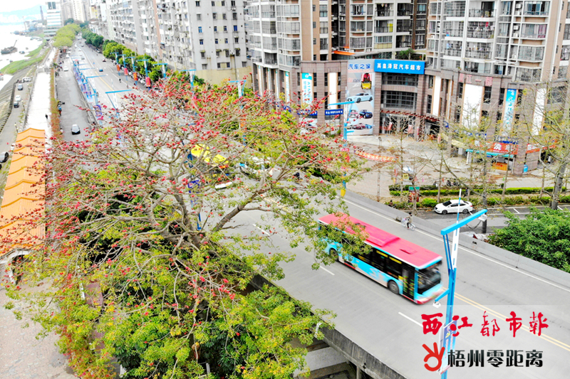 近日,梧州市云龍大橋、龍船沖客運中心、鴛江春泛等地的木棉花競相開放,為城市增添了美麗的春色。