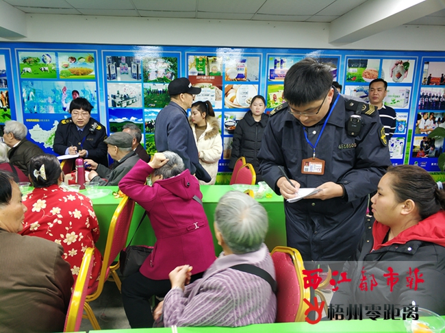 3月11日上午,梧州市市場監管局聯合市公安局民警,到市內數家疑似存在利用健康講座誘導老年人購買保健品的商家展開現場檢查。檢查中,工作人員同時登記了現場參會老人的人員信息,并介紹與保健食品相關的政策和法規。