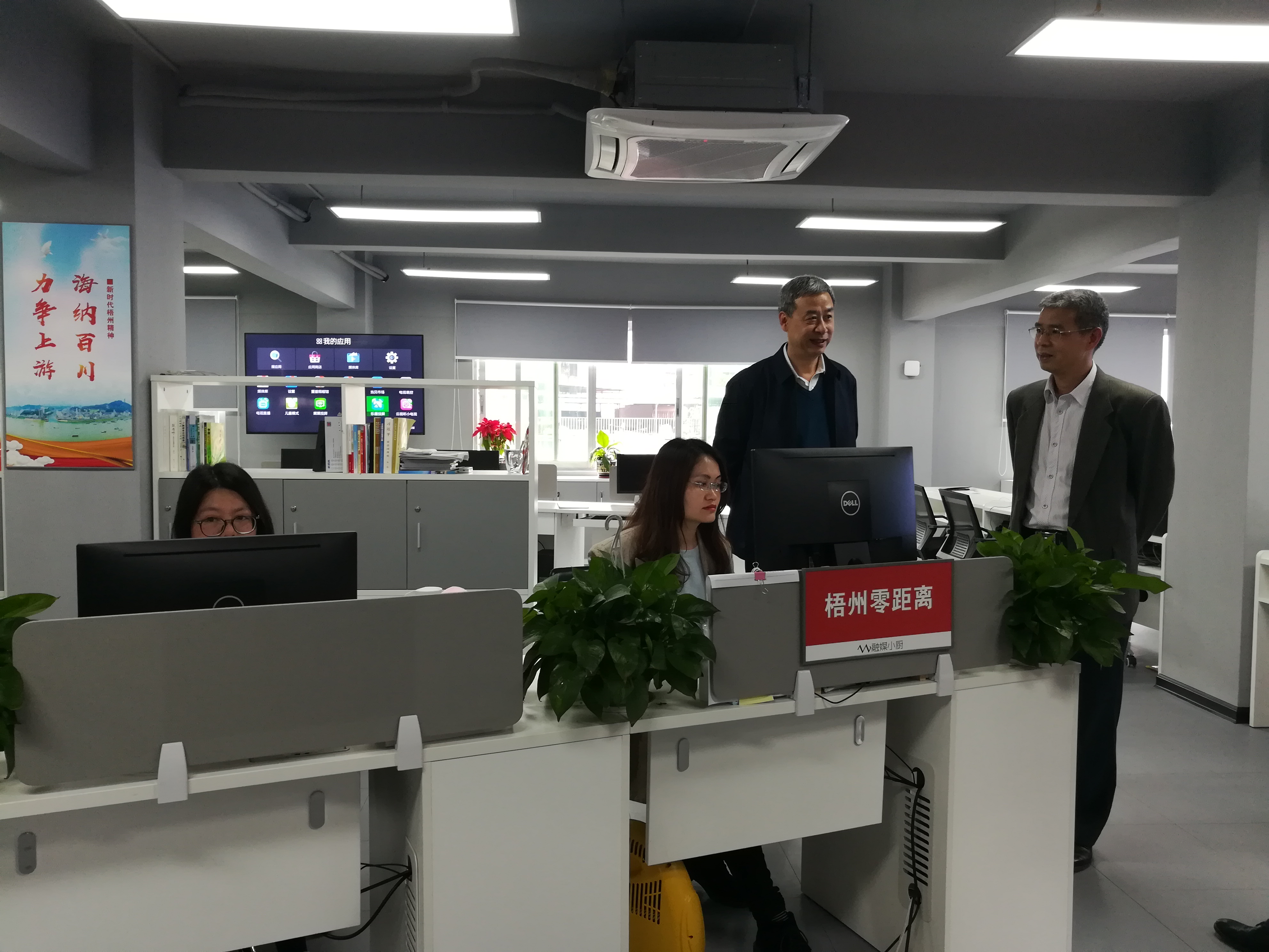 馬輝在梧州日報社全媒體編輯中心觀看指揮大屏,了解梧州市融媒體新聞中心目前的運作情況。 當天下午3時許,馬輝來到梧州日報社,先后到印刷廠、紙媒編輯部、全媒體采訪中心、全媒體編輯中心(梧州市融媒體新聞中心)了解工作流程。在全媒體編輯中心,馬輝特意向新媒體編輯了解梧州零距離微信公眾號的編發(fā)流程,并詳細詢問了梧州零距離網(wǎng)健康、美食、旅游等便民資訊欄目目前的運營情況等。馬輝表示,隨著西江機場開通的航線越來越多,希望新媒體能夠運用多種形式,做好航線和梧州旅游的宣傳。 |