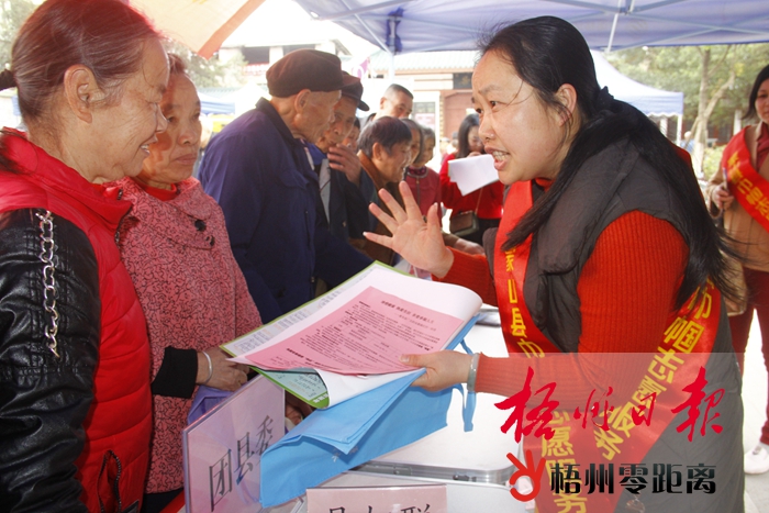 3月22日,在蒙山縣新世紀廣場,志愿者在向市民群眾提供咨詢服務。江永錄 攝