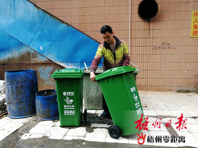 梧州零距離網-梧州日報訊(記者 吳艷虹)梧州市餐廚垃圾廢棄物資源化利用及無害化處理項目正式投產運營后,食品監督、城管等部門聯合項目運營單位在市內積極開展簽約合作,目前已與近2000家泔水產生單位簽約。近期,工作人員每天向各單位派發約200個餐廚垃圾桶,并商定擺放地點和每天回收時間。
