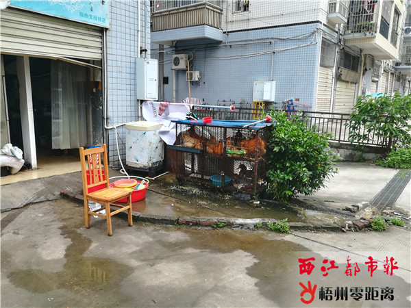 3月28日,豐業玫瑰園北區9號樓下養有不少雞。吳艷虹 攝 “家禽排泄物散發的臭味影響樓上居民的生活,尤其是夏天天氣熱的時候,臭味讓人難以忍受。”居住在北區9號樓的陳女士表示,小區業主曾多次向小區物管投訴,但情況都沒有得到改善。 對此,梧州市家家德物業管理服務有限公司負責人李先生表示,小區居民對此處養雞鴨的行為投訴了很多次,物管方也曾與店家進行交涉。“我們建議店家把家禽放到店內養殖,物管方出錢幫店家定制一個新的、體積較小的雞籠,可以放到店內養殖。當時店家接受了建議,但幾個月后故態復萌,店家又重新把原本體積較大的雞籠擺在了后門。”李先生無奈地說。 隨后,記者到該飯店了解情況。“我們每天都會對雞籠進行沖洗,但還是有異味。有些客人需要店家展示食材是否新鮮,或者喜歡直接購買家禽,所以雞籠擺放在飯店后門也是迫不得已。”店主表示,物管人員定制的新雞籠的確適合在店內養殖,但沒用多久就壞了,所以飯店只好又把雞籠繼續擺放在小區內。店方表示會加大每日清洗力度并增加清洗次數,同時減少家禽數量,還小區一個干凈清潔的環境。