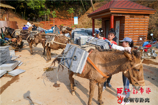 目前,炳蔚塔景區施工方正在對新鋪設的上山階梯進行完善,加裝木質欄桿,同時鋪裝塔下周邊地磚。由于上山道路崎嶇,施工方請來一隊辛勤的“搬運工”騾馬,依靠它們搬運建材。西江都市報記者 陳凡 攝