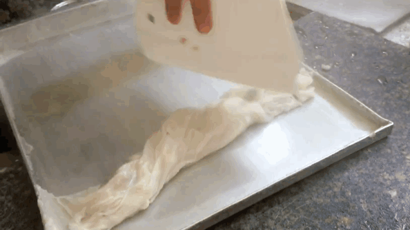 老板娘阿麗說:“客人們吃腸粉都很匆忙,可我磨米漿卻要有耐心,至少要磨三次。我們店用的是電磨,我覺得磨出來的米漿比石磨磨得更細滑。按照我的經驗,做腸粉的大米也有講究,我去買米的時候,會用牙齒咬一咬,比較硬的米才可以用來磨米漿,太軟的米就不行,做出來的腸粉不夠爽口。”