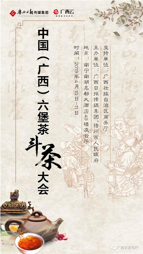作為廣西人, 我們也有自己的斗茶大會啦!!! 2019年4月10-11日 中國(廣西)六堡茶斗茶大會 將在南寧南湖名都大酒店舉行!