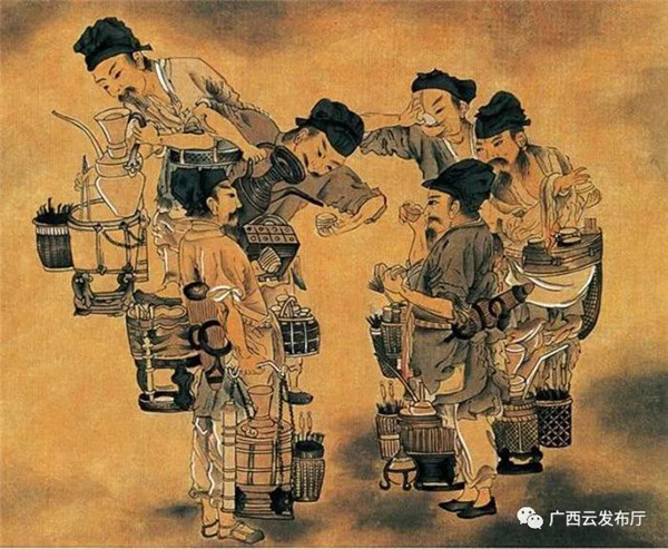 斗茶,即比賽茶的優劣, 又名斗茗、茗戰, 始于唐,盛于宋。 或十幾人,或五六人, 大都為一些名流雅士、店鋪老板, 街坊亦爭相圍觀。