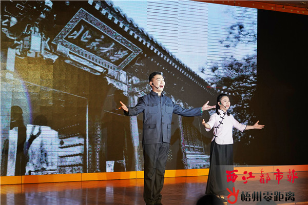 4月1日,在梧州學院明理理惑樓學術報告廳,朗誦者付博生、張春慧深情演繹高君寧致女友石評梅的信《我們搶上前去迎未來的文化罷》。西江都市報記者 陳凡 攝 隨著晚會進行至第三篇章“浴血奮戰,翻身解放”,透過《江姐托孤信》《葉劍英給女兒的信》《毛澤東寫給兒女們的信》這一封封革命者家書,觀眾真切感受到了在他們剛強的外表下,始終包含著對家人的一份濃濃溫情。而在第四篇章“繼往開來,續寫華章”中,周恩來與鄧穎超的伉儷情深,駐外維和戰士對萬里之外家人的不舍,同樣讓現場觀眾深受觸動。 晚會總導演,梧州市群眾藝術館館長陳強表示:“本次晚會以革命先輩的家書為貫穿線,以朗誦為主、歌舞為輔,將革命先輩們在書信中的真情流露,通過音詩畫的創新表現形式一一呈現在觀眾眼前,這也是我市第一次以這樣的舞臺形式進行展演。我們希望在清明前夕,以這種方式向革命先烈致敬,向新中國成立70周年獻禮。”