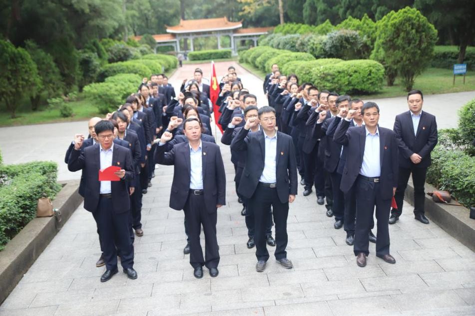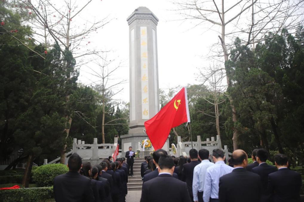 在祭掃儀式上,郵儲銀行梧州市分行全體黨員面向紀念碑莊重肅立,向革命先烈敬獻花圈,認真傾聽珠山革命烈士紀念碑的歷史,了解到梧州的解放是無數(shù)革命烈士前仆后繼英勇斗爭爭取回來的,六十多年過去了,革命烈士的精神與山河共存,與日月同輝。隨后,黨員同志們向革命烈士紀念碑深深地鞠了三次躬,并舉起右手,集體重溫入黨誓詞。儀式結(jié)束后,全體黨員繞場一周,瞻仰著紀念碑,表達著對烈士的崇高敬仰。