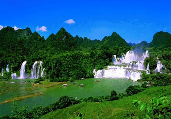 德天跨國(guó)瀑布地處峰林平原河道,游人可以走進(jìn)瀑布,可以通過所有感覺器官來感受瀑布:看其形,聽其聲,呼吸含高濃度的負(fù)離子的空氣,用身體感受迷蒙的水霧,享受大自然的沐浴。