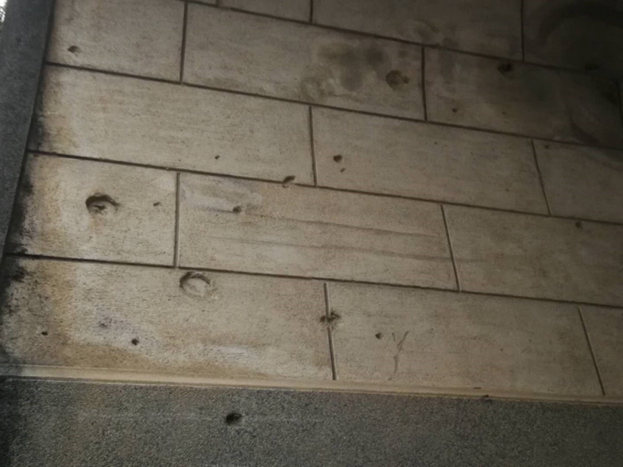 友誼關(guān)的通道墻壁上布滿了深淺不一的彈孔。