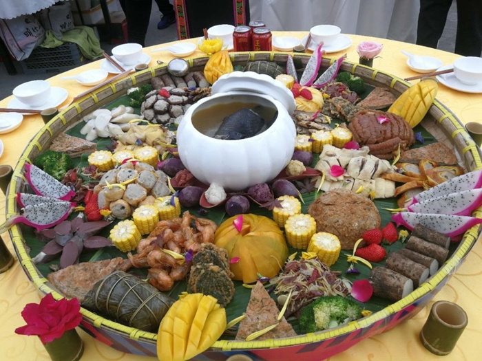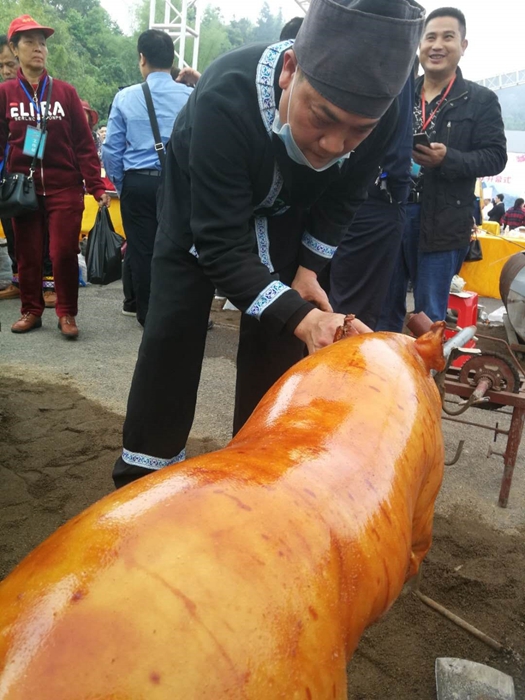 開幕式上除了有民族民俗文化風(fēng)情展演,最讓人激動(dòng)的就是令人垂涎的美食盛宴,烤乳豬、簸箕宴、越南菜……琳瑯滿目的中外菜式讓小伙伴們大開眼界。當(dāng)天還舉行2019年壯鄉(xiāng)美食展示暨“烤金豬”大賽,金黃的福豬在炭火的炙烤下香氣飄散,讓人垂涎三尺。