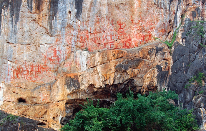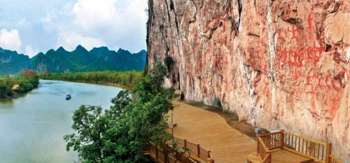 臨江仙蹤夢(mèng):世界文化遺產(chǎn)——千年花山巖畫 花山巖畫地處廣西崇左市左江及其支流明江流域 (范圍包括崇左市寧明縣、龍州縣及江州區(qū)和扶綏縣境內(nèi)。),巖畫密集分布在廣西崇左市境內(nèi)的左江及其支流明江兩岸200多公里的崖壁上,與其依存的山體、河流、臺(tái)地共同構(gòu)成壯麗的左江花山巖畫文化景觀,其中寧明花山是典型代表。