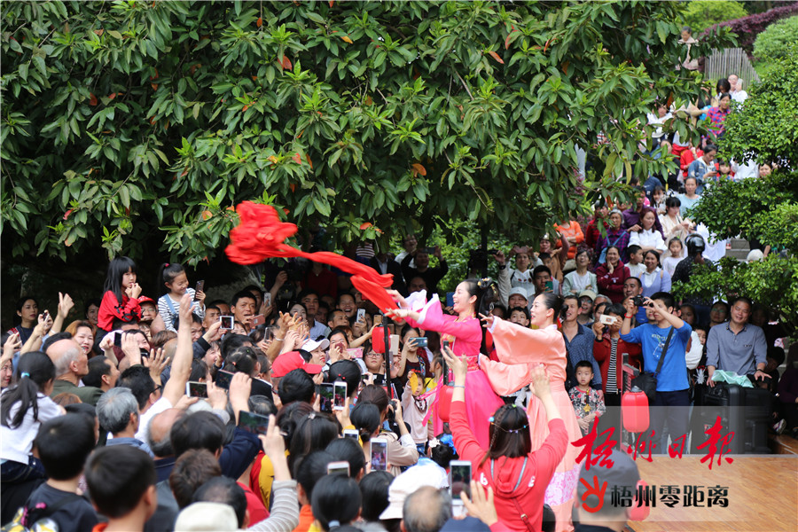 當(dāng)天,“壯族三月三·相約游廣西”暨蒙山民俗文化旅游節(jié)活動(dòng)開(kāi)幕,該縣在永安王城景區(qū)、梁羽生公園等地分別舉行天山飛舞、七劍聚蒙山、比武招親等節(jié)目表演及活動(dòng),在長(zhǎng)坪“水韻瑤寨”景區(qū)組織開(kāi)展拋繡球、竹竿舞、板鞋競(jìng)速、大象拔河等少數(shù)民族體育比賽及“瑤族婚嫁”展演等活動(dòng),吸引眾多市民游客參與。蒲春秀 攝
