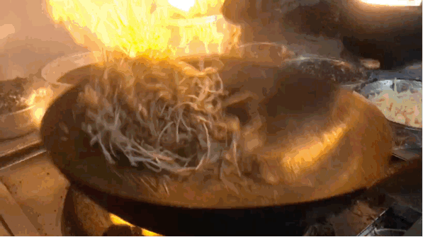那天陽光明媚,是一個享受美食的好日子。哥走進一家粉絲推薦的飲食店,看到一個正在爐灶前炒河粉的男人。他揮舞著鍋鏟,配合顛勺等一連串動作將河粉拋起,火花迸發,熱氣籠罩。趁河粉不注意,他澆上些許醬油調味,在連續的翻滾、旋轉、跳躍中,河粉就這樣被炒熟并被迅速裝盤送到了食客的面前。