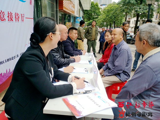 當(dāng)天,大塘街道灝景玥城社區(qū)“民意接待廳”正式掛牌儀式,辦公地點(diǎn)就設(shè)在社區(qū)辦公室。掛牌儀式剛過(guò),“兩代表一委員”就在社區(qū)門(mén)口擺攤設(shè)點(diǎn)接訪居民,傾聽(tīng)大家的呼聲,記下居民的期盼。 “我們的聲音通過(guò)‘民意接待廳’,從社區(qū)一直傳遞到相關(guān)部門(mén),相信不少難題能夠得到較好的解決。”家住興安小區(qū)的居民許志鈞表示,灝景玥城社區(qū)轄區(qū)內(nèi)的興安小區(qū)是一個(gè)無(wú)物業(yè)管理的小區(qū),自從長(zhǎng)洲街長(zhǎng)團(tuán)隊(duì)對(duì)興安小區(qū)消防通道進(jìn)行整改后,小區(qū)居民出行方便安全多了,但近段時(shí)間有人在小區(qū)內(nèi)道路設(shè)置停車鎖,這次他來(lái)到“民意接待廳”,就是反映這個(gè)問(wèn)題。 “社區(qū)點(diǎn)亮‘微心愿’,更多的是解決個(gè)人的需求,而‘民意接待廳’則旨在為更多群眾解決共性需求。”大塘街道黨工委書(shū)記覃春梅表示,根據(jù)居民反映的問(wèn)題,能在社區(qū)解決的,社區(qū)及時(shí)進(jìn)行解決,需要其他部門(mén)協(xié)調(diào)解決的,社區(qū)將及時(shí)向上級(jí)部門(mén)反映處理。大塘街道辦事處計(jì)劃4月18日前在轄區(qū)其余9個(gè)社區(qū)設(shè)立“民意接待廳”,通過(guò)這個(gè)辦事、議事平臺(tái),開(kāi)放、共享社區(qū)公共設(shè)施和資源,面對(duì)面、“零距離”傾聽(tīng)群眾心聲和需求。 覃春梅表示,下一步,各個(gè)社區(qū)也將根據(jù)社區(qū)的實(shí)際情況,多方發(fā)動(dòng)“兩代表一委員”、“雙報(bào)到”單位、熱心黨員群眾、愛(ài)心企業(yè)等組織和個(gè)人,主動(dòng)參與民意接待活動(dòng)和社區(qū)管理,盡力為群眾解難事、辦實(shí)事,不斷增強(qiáng)人民群眾獲得感、幸福感、安全感。 |