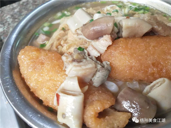 昌記的粉 做餐飲實在是很累的一件事,特別是做早餐和夜宵。今年55歲的昌叔覺得,做這一行實在熬得太辛苦,而且做飲食后連朋友都開始生疏了,這也難怪:別人在睡覺,而他,雞還沒鳴就開始忙碌;等別人忙完準備開始“嗨皮”,他已經累得不想說話,只想睡覺。 所以,昌叔打算再堅持幾年,就享清福了,操勞的日子已經堅持了太久,心累,人也累。 吃貨“須縱酒”:昌記的配菜中,讓我印象最深的是粉腸,這里的粉腸可以說是我吃過的最入味的粉腸了。昌記的河粉分量很足,一般女生吃一兩都有可能吃不完(我就吃不完)。唯一缺點是河粉不夠爽,很容易就夾碎了,不知道是不是太晚來吃的緣故。 吃貨“長歌行”:我每天都來這里吃早餐,其中最喜歡吃紅油牛腸配腐竹,放一勺酸腌菜、兩勺醬油辣椒、三勺酸辣椒,這般酸爽是我的最愛。老板給的分量超級足,7.5元就有其他店二兩粉的量,有時候還真的是兩個人才能吃完。 營業時間:早上6點至下午3點 地址:梧州市新興一路勝隆里25號
