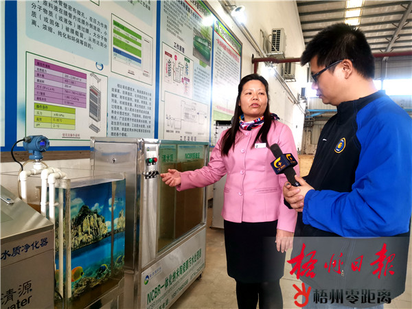 4月17日,在粵桂合作特別試驗區碧清源公司設備組裝車間,廣西廣播電視臺記者傾聽企業負責人介紹水質凈化器中的“高科技”元素。 陳可夫攝 本次大型主題采訪活動開展期間,自治區主要媒體記者與我市媒體記者一同深入基層貼近群眾,把蹲點調研采訪作為增強“腳力、眼力、腦力、筆力”的實踐課堂,通過開展全媒體采訪報道,充分展示新中國成立70年來廣西發展取得的輝煌成就。 目前,我市正深入實施“東融”戰略,通過“理念融、交通融、產業融、生態融、人才融、治理融”六大方面積極融入粵港澳大灣區,爭當廣西“東融”排頭兵。4月17日,自治區主要媒體記者與我市媒體記者圍繞工業高質量發展、優化營商環境等采訪方向,先后到粵桂合作特別試驗區、藤縣陶瓷產業園區走訪調研,與廣西碧清源環保投資有限公司、歐神諾陶瓷有限公司等企業負責人以及園區管委會負責人深入交流,記錄企業和園區在科技研發生產、促進產業升級,招商引資等方面的奮斗故事,為講好廣西故事、傳播好廣西聲音積累鮮活的素材。