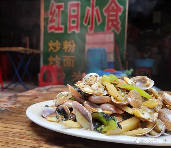 早前,資深吃貨阿芬總喜歡開摩托車載著刺猬姐,穿梭在街頭巷尾,將心中喜愛的梧州美食一一安利。其中有一家老字號(hào)飲食店名叫紅日小食,老板炒功了得,用爆炒小吃牢牢地綁住了熟客們的胃。今天刺猬姐就帶大家去看看。 初見老板梁生,刺猬姐實(shí)在不想叫他小梁,因?yàn)樗樕系哪z原蛋白還很足,看起來年紀(jì)輕輕,一點(diǎn)都不像是老字號(hào)店鋪的創(chuàng)始人。但小梁告訴刺猬姐,他在2004年的時(shí)候開了這家店鋪,經(jīng)營(yíng)到現(xiàn)在已有15年之久,算是一間比較年輕的老字號(hào)吧。