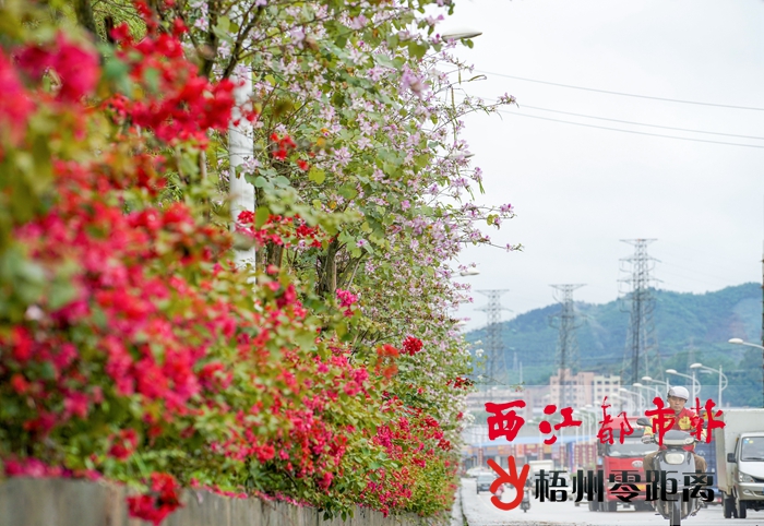 4月16日,國道207線沿路,綠植花草經(jīng)雨水洗禮后更顯艷麗。據(jù)了解,經(jīng)過綠化提升的國道207線舜帝大道段,沿線種植的洋紫荊、寶巾花正值花期,成為道路兩旁一道靚麗的風(fēng)景線。 記者 陳凡 攝