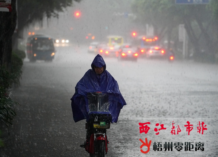 4月20日,市民駕駛電動車冒著大雨在梧州市富民一路行進。陳凡 攝 當天9時許,天空烏云密布,隨后暴雨傾瀉而下。梧州市市政工程管理處組織出動50多名工作人員和7輛工具車,在暴雨發生后第一時間到市區各內澇易發區域清除收水口垃圾,排除積水。同時,市政工人對怡景市場周邊、步埠路口、政府廣場周邊、巴黎春天段、毅德城段、洛湛鐵路橋底段等出現積水的地段迅速開展作業。上述路段積水于當天10時左右基本消除,中心城區未出現大面積積水及內澇情況。 其中,梧州高新區星和一路口積水最嚴重,再次出現雨流成河的現象,水深沒及普通成年人腰部。梧州市市政工程管理處在暴雨發生后,迅速組織20多名人員和4輛工具車到場進行排澇,當天11時許,積水逐步消退。在積水消退期間,梧州市城市管理監督局組織市市政工程管理處負責人及技術人員匯同高新區負責人,對排水管網進行排查,力求查明園區路段易澇原因,以便采取針對性處理措施。