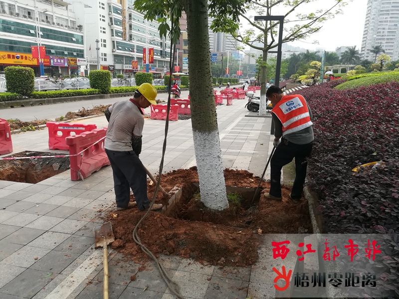 梧州零距離網(wǎng)-西江都市報(bào)訊 (記者 吳艷虹 實(shí)習(xí)生 賴陽云) 4月中旬,梧州市新興三路基礎(chǔ)設(shè)施整體改造提升工程啟動建設(shè)。記者從項(xiàng)目施工方了解到,按照工程規(guī)劃,金苑大酒店至柳州銀行路口段為試驗(yàn)段,該段道路的綠化樹木將全部移植改種大腹木棉樹,同時(shí),該路段將內(nèi)移人行道,拓寬非機(jī)動車道。