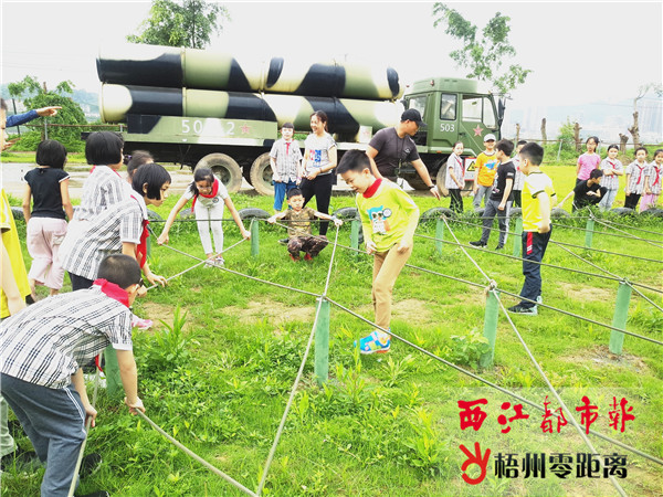 西江都市報記者 姚藍婷 4月26日,梧州市第二實驗小學200多名學生滿懷激動的心情,以飽滿的精神來到梧州軍博園參加軍體趣味研學活動。“軍是什么?”軍體趣味研學活動開始前,教官首先向學生們拋出一個問題。“軍是軍人。”、“軍是嚴格的紀律。”、“軍是軍姿。”學生們對此有著不同的解答。隨后,教官說道:“今天,你們要學習軍人的作風,以軍人的紀律要求和約束自己,聽從指揮。” 相互協助發揮團隊精神 上午10點,軍體趣味研學活動正式開始。梧州市第二實驗小學的學生以班級為單位,逐項挑戰“百米障礙大挑戰”、“戰術射擊”、“軍情密碼”等軍體項目。在“百米障礙大挑戰”項目中,“翻越高板跳臺”、“跨越地樁網”考驗著學生們合理分配及相互協助的能力。164班第二小組正在挑戰該項目,組員們爭分奪秒地奔跑,穿越障礙物,在高板跳臺前,只見他們相互觀察對方,依據身高體重分配誰先翻越,誰負責托舉來完成這一挑戰。“翻越高板跳臺”之后,迎接他們的是最后一個挑戰——“跨越地樁網”,跨越地樁網時腳不能觸碰到網,否則需要重回出發點,第二小組的李俊毅多次挑戰都沒有成功,其他組員見狀,在一旁將地樁網按壓變低,幫助他成功跨越。