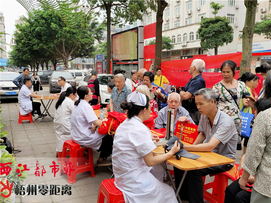 在活動現(xiàn)場,龍圩區(qū)中醫(yī)醫(yī)院的醫(yī)務(wù)人員免費為居民開展健康檢查。