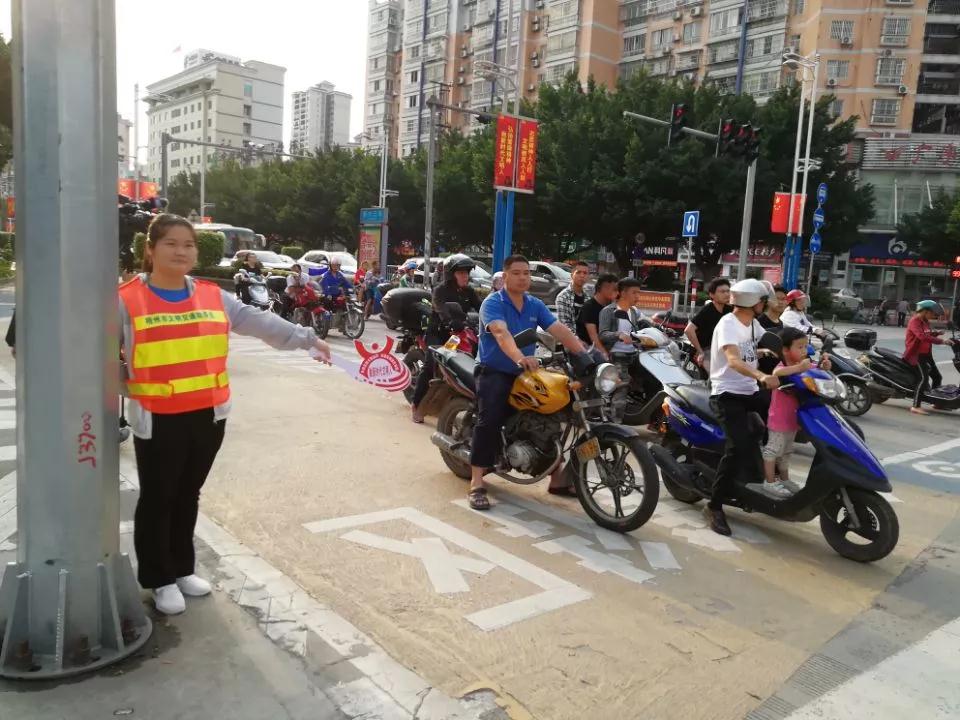 志愿者在市政府對出路口進行文明交通勸導(dǎo)。楊鳳蘭 攝 參加當(dāng)天志愿服務(wù)活動的梧州職業(yè)學(xué)院學(xué)生賴小潔說:“在五一勞動節(jié)這一天進行文明交通勸導(dǎo)活動非常有意義,通過活動能夠幫助人們養(yǎng)成良好的交通出行習(xí)慣。” 梧州職業(yè)學(xué)院學(xué)生韋君在受訪時表示,自己是第二次參加文明交通勸導(dǎo)志愿服務(wù),“如果見到有腿腳不便的老人過馬路,我也會過去幫忙攙扶。參加志愿者活動讓我有一種助人為樂的喜悅。”