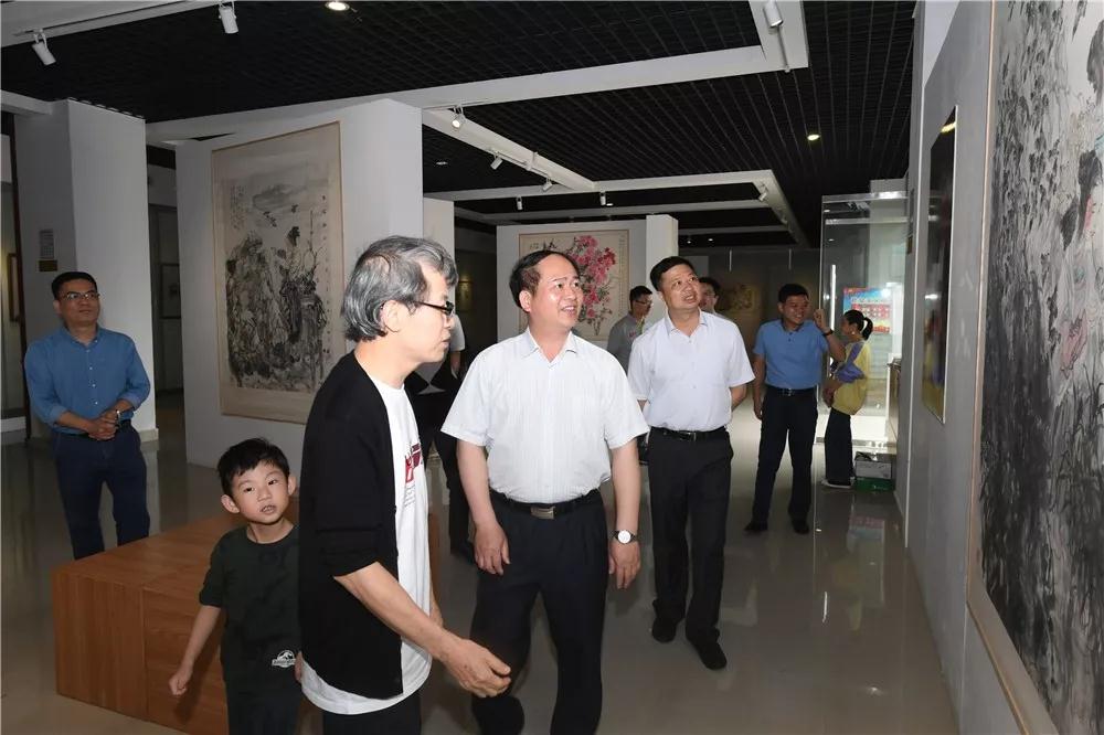 5月1日下午,市委書記全桂壽到市美術館,參觀在此展出的《墨近古稀——李靈機從藝五十年美術作品展》。