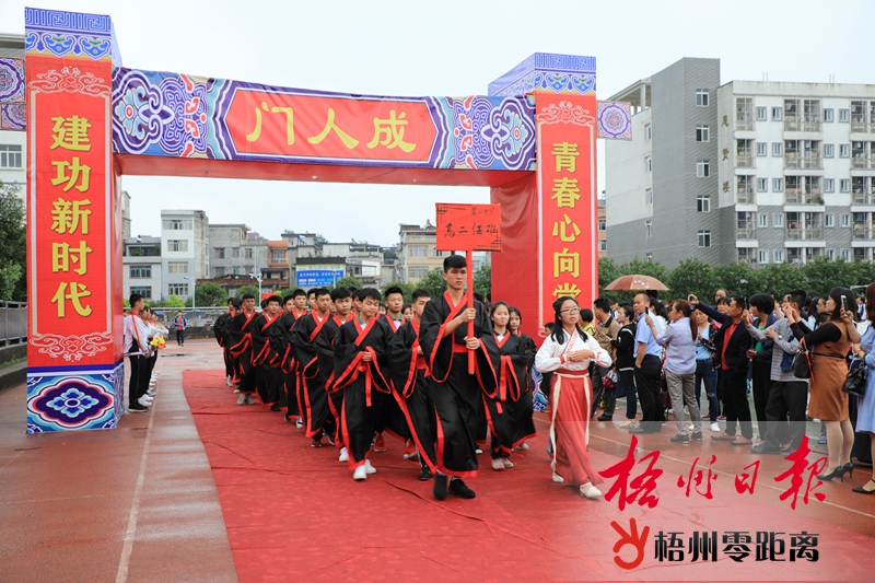 5月4日,蒙山縣蒙山中學(xué)學(xué)生正在列隊通過成人門。