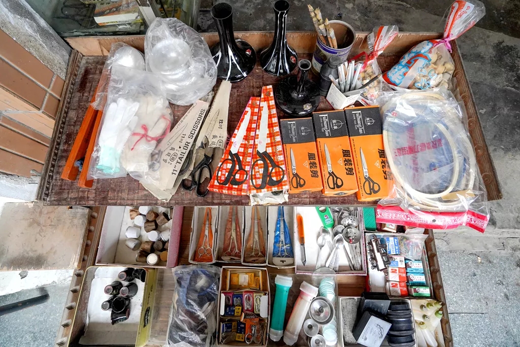 葉師傅的店里擺滿了上世紀(jì)八九十年代百貨商店里的貨品。如今還在用這些貨品的街坊已不多,但葉師傅坦言,與其說(shuō)他賣(mài)的是貨品,不如說(shuō)是某種回憶。