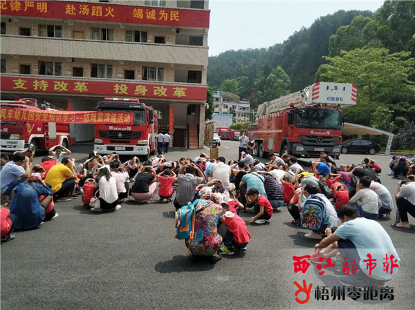 5月11日上午,長洲區大風車幼兒園組織學生和家長在梧州市消防支隊開展防震減災安全應急疏散演練,提高學生們的防震減災意識及應急避震能力。