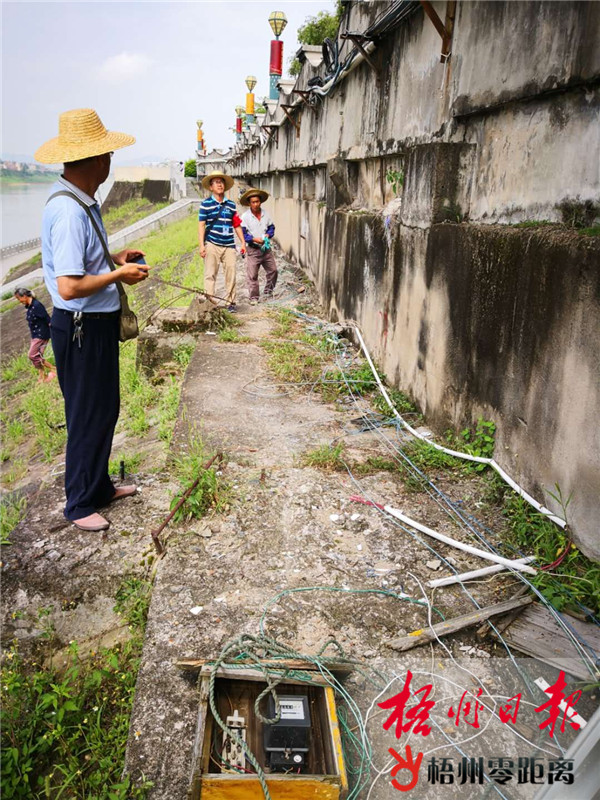 5月15日,市防洪排澇工程管理處工作人員在清理河西防洪堤上的私拉電線。近期,防洪堤管理部門開展防洪堤亂象整治行動,對影響堤防安全和存在隱患的電箱、線路進行清理。