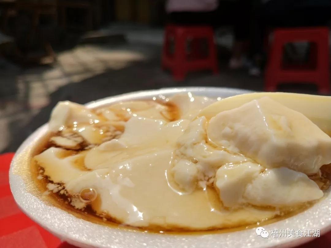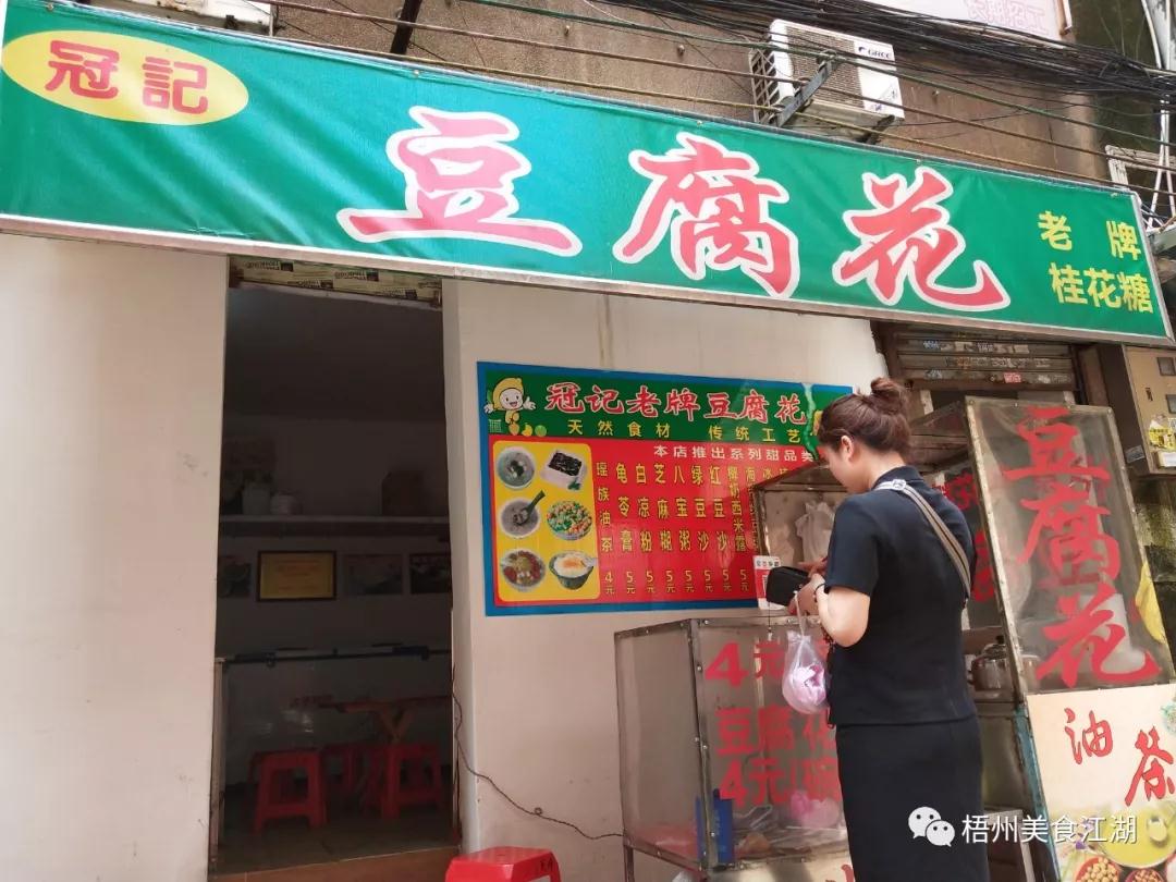 冠記豆腐花 老板冠伯是賀州鐘山縣人,他年輕時在單位就是做食品加工的。20世紀90年代他自己出來闖蕩,嘗試過開工廠做食品加工,一段時間后發(fā)覺生意不景氣。2003年他來了梧州,發(fā)現(xiàn)豆腐花沒什么人做,而自己又會做,于是從2004年開始和別人搭檔,推小車賣豆腐花,奔走在街尾巷口,賣完一桶就回家,在怡景一帶漸漸被“吃貨”熟知。