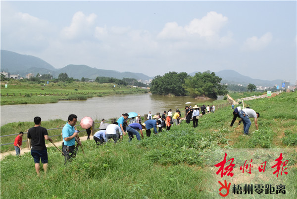 5月14日,在岑溪市城區(qū)義昌江河段,干部職工在清理一級水源保護(hù)地農(nóng)業(yè)面源污染的各類農(nóng)作物。 5月11日至14日,岑溪市多個單位部門開展義昌江飲用水水源地保護(hù)區(qū)內(nèi)污染源專項清理整治行動,對保護(hù)區(qū)內(nèi)的農(nóng)作物、養(yǎng)殖場、垃圾等進(jìn)行清理。截至5月14日,該市累計出動干部職工800多人次,共清理垃圾80多噸,拆除豬舍5間約800平方米,拆除違章建筑和搭蓋物230平方米,清理建筑材料堆料場、河砂堆料場、砂石堆放點各一個。 黃琪峰 攝 |