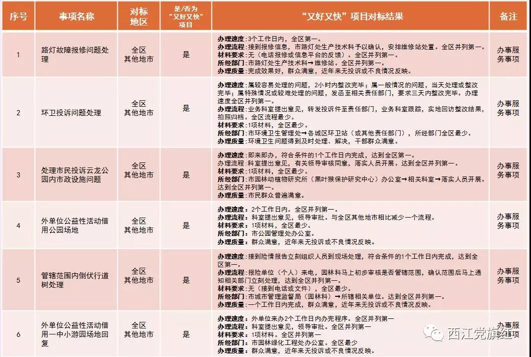 為推動“對標先進、又好又快”活動順利開展,市委要求全市各單位梳理本單位的對外審批辦事服務事項,要與全國、全區先進地區對標,做到同類事項、相同時間,先進地區能做到的,在梧州不僅能做到,而且要做得更快更好、群眾更滿意。