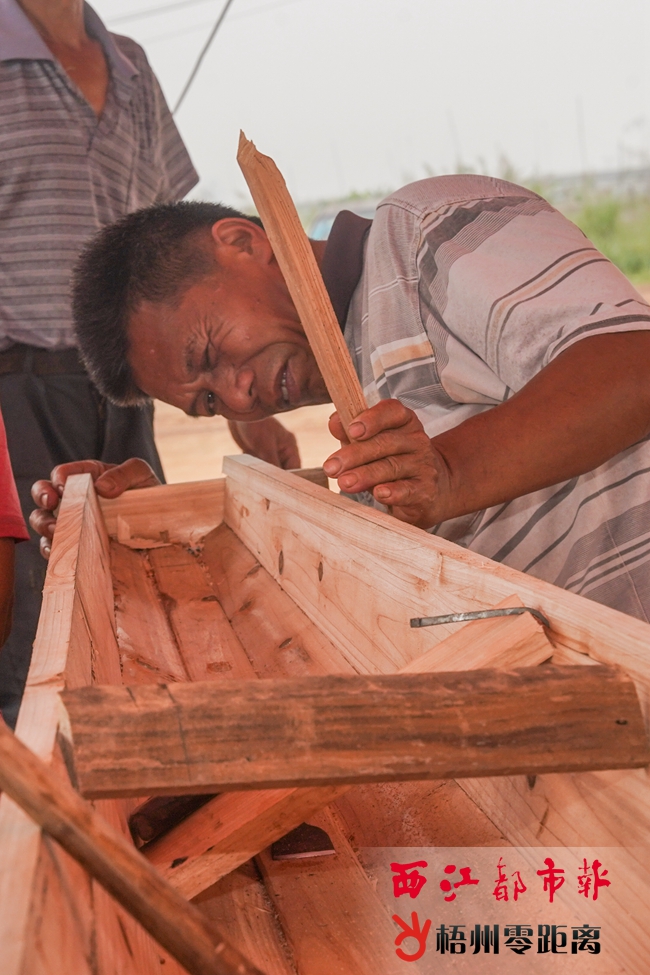 文字:西江都市報記者 蒙敏瑩 圖片:西江都市報記者 楊揚 4月中旬,初夏未至,空氣中還透著幾分清涼。 在長洲區(qū)長洲鎮(zhèn)寺沖村,幾名村民將收藏在廟宇內的杉木抬出,請來附近手藝好的老藝人,準備開始龍舟的制作。 每年端午節(jié),西江邊上,梧州城的男女老少都會為龍舟賽獻上最熱烈的喝彩聲。而一艘艘奮勇爭先的龍舟背后,有著獨特的制作工藝。 制作龍舟不是一件簡單的事情。從選木、裁板,到拋光、打磨,每一道工序都極其繁瑣,每個環(huán)節(jié)都與最終的成品效果息息相關。