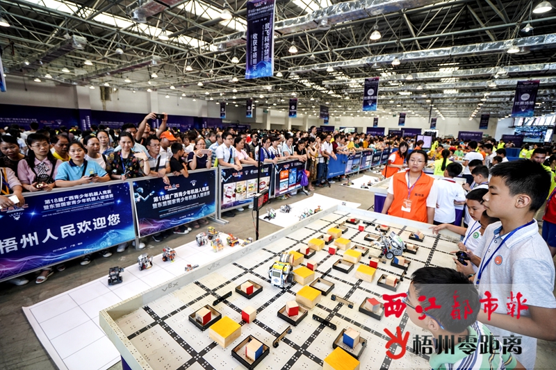 梧州零距離網-西江都市報訊 (記者 朱元冬)5月25日,第18屆廣西青少年機器人競賽暨東盟國家青少年機器人邀請賽,在梧州毅德國際博覽城拉開“戰幕”。來自馬來西亞、柬埔寨、印度尼西亞、菲律賓等4個國家的8支隊伍共45名選手,與來自廣西14個地市的1200多名選手同場競技。