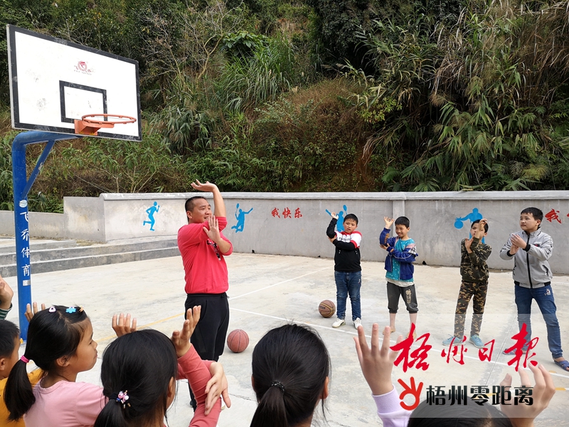 作為駐村工作隊員來到岑溪市岑城鎮(zhèn)垌尾村后,岑溪中學教師陳思東自去年9月份以來義務就給垌尾小學學生上體育課—— 甘栩 文/攝 “今天我們要開始學習籃球第一項基本操作——原地運球。”“耶!太好了!”聽到老師說要學習打籃球,岑溪市岑城鎮(zhèn)垌尾小學30多名學生不禁歡呼雀躍起來。