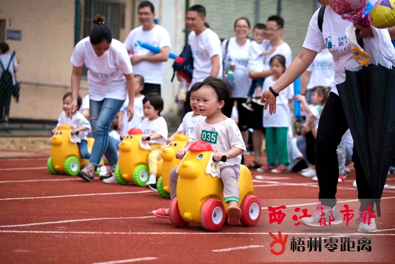 5月25日,在蒼梧縣中等專業學校,騎著玩具車的幼兒在家長的鼓勵聲中沖向終點。“六一”國際兒童節前夕,龍圩區婦聯組織當地50多個家庭開展萌寶運動會,讓家長和孩子們留下美好的親子活動記憶。記者 紀榮蘭 通訊員 潘麗燕 攝影報道