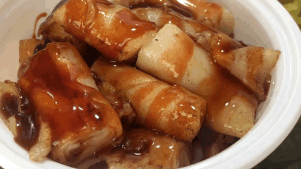 經(jīng)過調(diào)味的腸粉,令人垂涎欲滴。