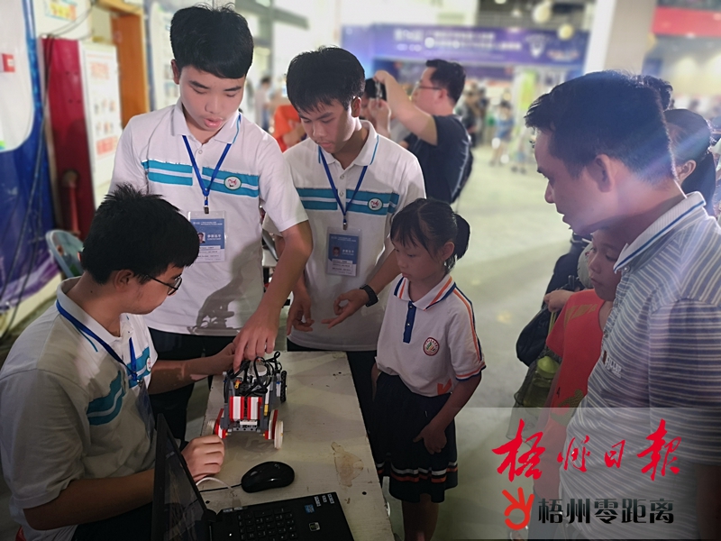 梧州日報記者 全淦枚 通訊員 梁勵 文/攝 5月23日至26日,由自治區科協、自治區教育廳、梧州市人民政府主辦的第18屆廣西青少年機器人競賽暨東盟國家青少年機器人邀請賽在梧州毅德國際博覽城舉行,來自廣西各市代表隊和東盟國家代表隊的參賽隊伍在梧州上演了精彩的智慧較量。 我市130名中小學生組隊參加了此次賽事。作為東道主,面對眾多的強勁對手,我市代表選手并沒有怯懦,而是充滿自信迎接挑戰,向對手以及廣大觀眾展現了梧州市在機器人教育方面的驕人成果。