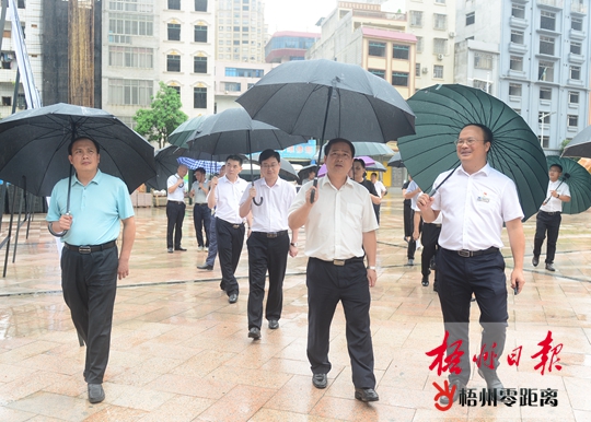 梧州零距離網-梧州日報訊(記者 李欣鞠 梁萍)5月29日,市委書記全桂壽到梧州市商貿物流園區和岑溪市,調研園區開發建設和縣域經濟發展工作。他強調,梧州市商貿物流園區要以不甘落后、力爭上游的勁頭,抓緊干出園區形象,展現園區發展成果。岑溪市要以時不我待的緊迫感,進一步解放思想,擔當實干,抓住關鍵,破解難題,精準施策,努力扭轉經濟下滑態勢,推動經濟社會穩中提質、穩中向好。