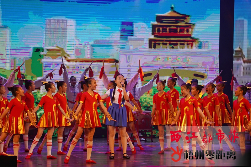 5月29日晚,萬秀區教育局“花開中國”慶“六一”文藝匯演在梧州市文化中心影城舉行。圖為文瀾路小學帶來的表演《少年中國說》。記者 陳凡 攝