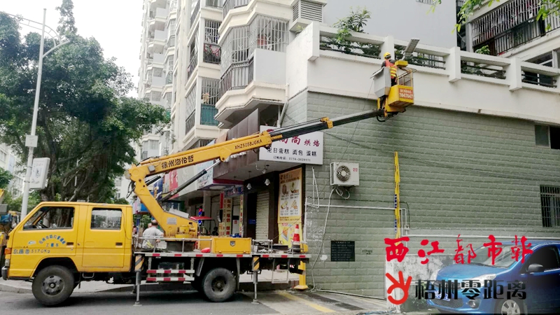 日前,梧州市路燈管理處工作人員在銀湖南路安裝路燈。