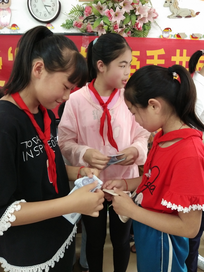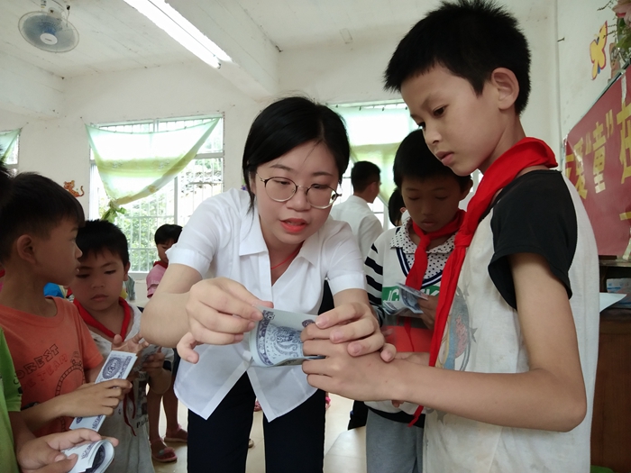 點鈔練習后,青年員工還組織了一次點鈔比賽,讓孩子們體驗到競技的樂趣。