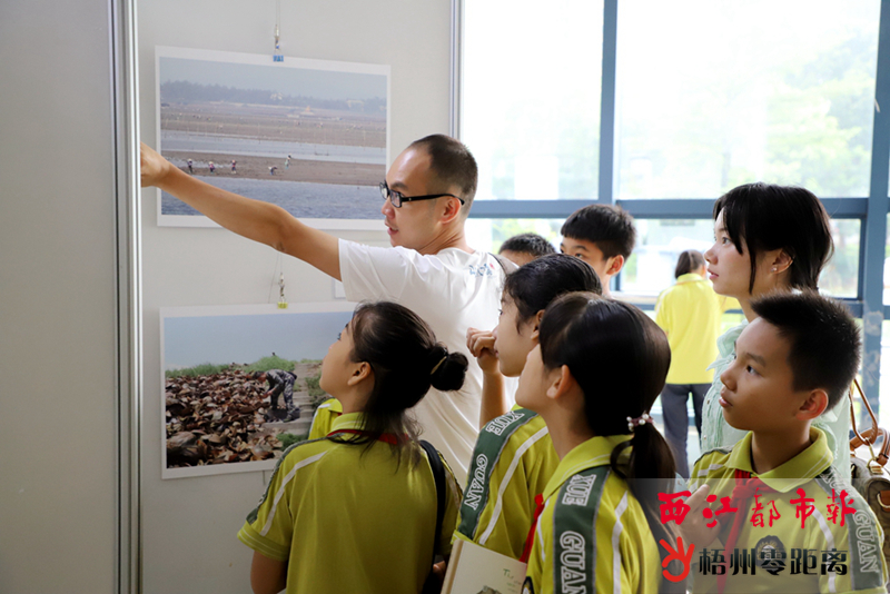 6月5日,長洲區紅嶺小學學生在市圖書館觀看“廣西生物多樣性”圖片展。