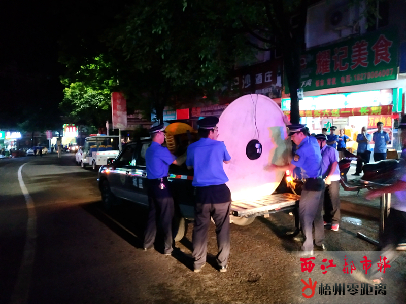 當(dāng)天零時30分,梧州市城市管理監(jiān)督局聯(lián)合萬秀區(qū)政府、長洲區(qū)政府等部門,共出動60多人,對龍山路夜市攤檔聚集地開展突擊整治行動。執(zhí)法人員現(xiàn)場整治糾正違規(guī)商鋪10多家,依法暫扣一批占道木桌、塑料椅、廣告燈箱等物品。