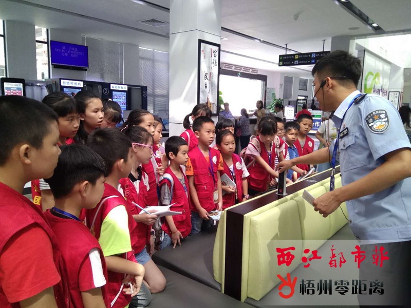 梧州零距離網-西江都市報訊 日前,梧州公安局出入境接待大廳迎來了一批特殊的小客人——30名梧州日報社小記者。經過半天的主題研學活動,小記者對該接待大廳高效便捷的辦事流程和貼心服務不禁豎起了大拇指:“出入有境,服務無境。”